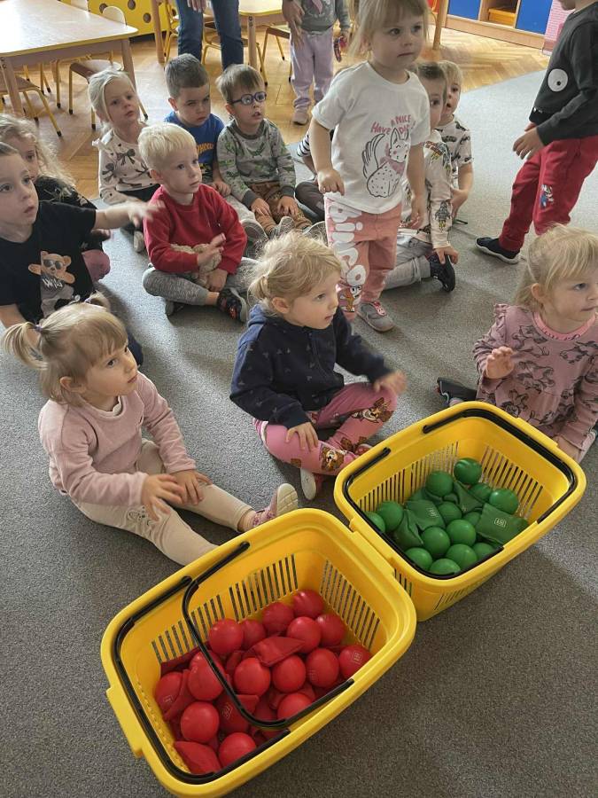 Oglądaliśmy różne przedmioty znajdujące się w łazience: gąbki i mydła, różne szczotki i szczoteczki, grzebienie, opisywaliśmy ich wielkość, kształt i kolor poprzez różnego rodzaju gry i zabawy, wierszyki, piosenki i kolorowanki. Rozmawialiśmy o warzywach, owocach, grzybach (borowik szlachetny, muchomor czerwony) oraz o drzewach liściastych (dąb, kasztanowiec, jarząb) ich owocach (żołędzie, kasztany, jarzębina).