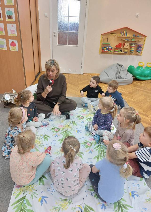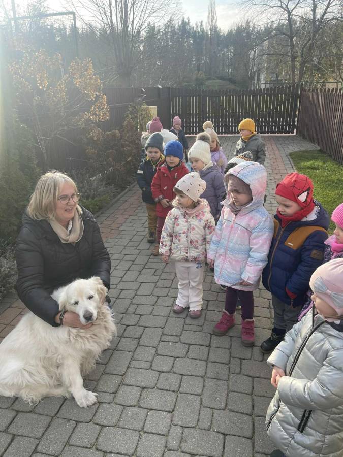 Słuchaliśmy opowiadań o kotach i psach.  Wybraliśmy się w odwiedziny do Pani Wiesi, aby poznać jej koty i psa. Mówiliśmy o zimowych zwyczajach zwierząt i prawidłowym dokarmianiu.  Obserwowaliśmy wygląd wróbla i sikorki. Dowiedzieliśmy się, że zimą niedźwiedzie śpią w gawrze, wiewiórki chronią się w dziupli , a jeże w kopczyku liści. 17 listopada obchodziliśmy Światowy Dzień Wcześniaka a 25 listopada Dzień Pluszowego Misia. Na zakończenie imprezy odbyło się rozstrzygnięcie konkursu Ulubiona bajka o misiu z dzieciństwa mamusi / tatusia