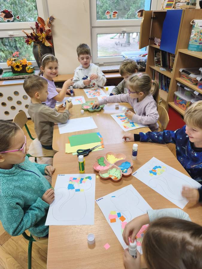 W listopadzie wykonaliśmy także wiele prac plastycznych, rozwijając kreatywność, sprawność manualną i umiejętność pracy w grupie.
