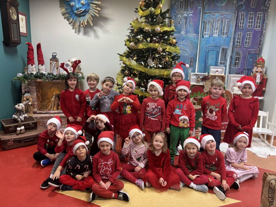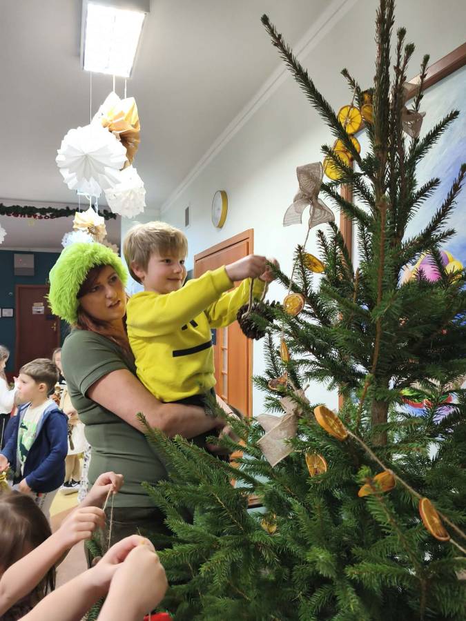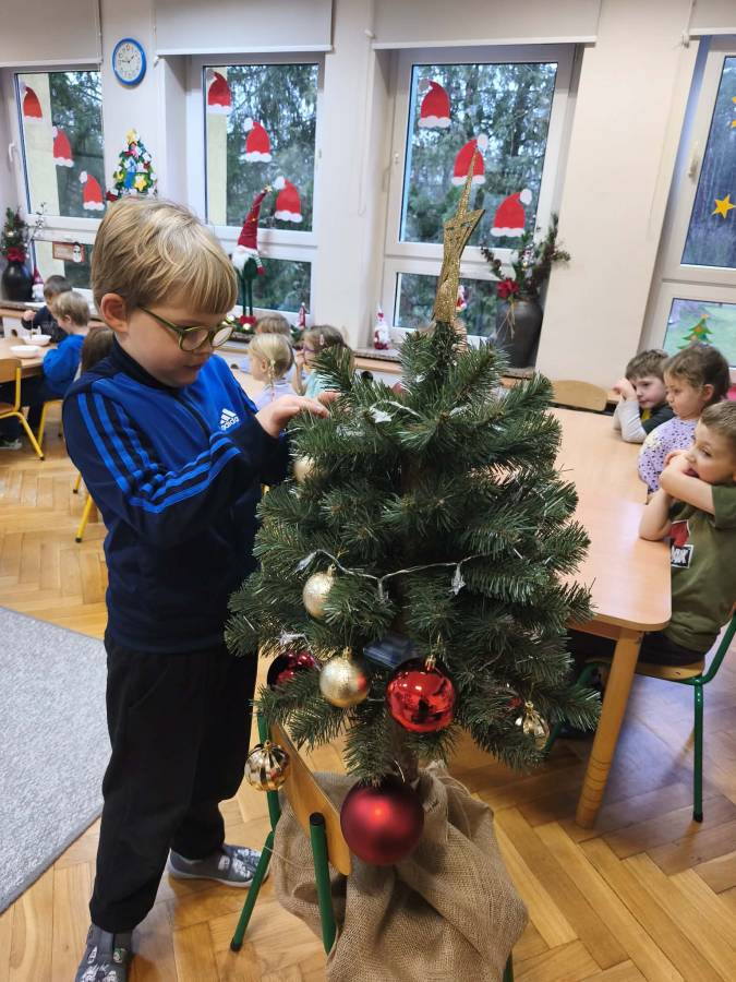 Dzieci z zaangażowaniem uczestniczyły w przygotowaniach do Jasełek przedszkolnych, ucząc się współpracy, odwagi scenicznej oraz pielęgnując tradycje bożonarodzeniowe. Ważnym wydarzeniem było także spotkanie świąteczne z rodzicami, które sprzyjało budowaniu ciepłej, rodzinnej atmosfery i wzmacnianiu więzi między przedszkolem a domem rodzinnym.