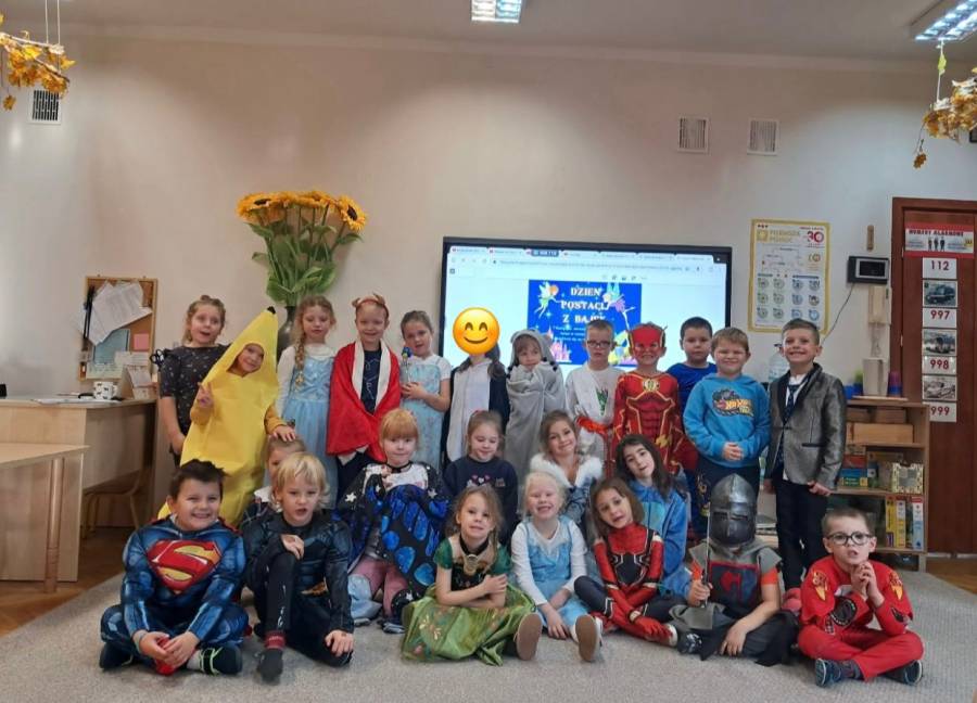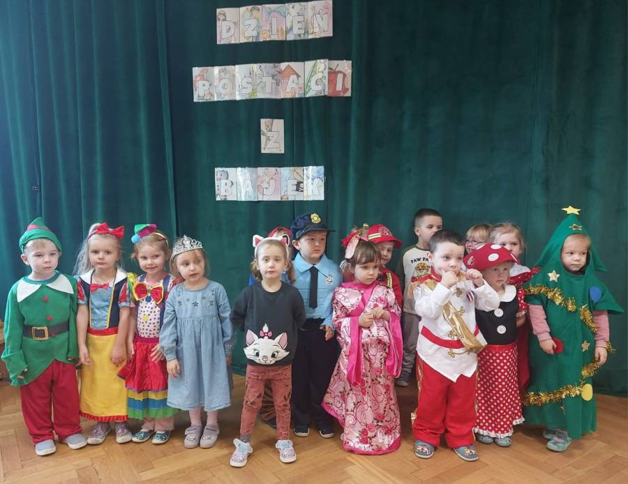 Międzynarodowy Dzień Postaci z Bajek obchodzony jest 5 listopada, w rocznicę urodzin Walta Disneya. To doskonała okazja, aby w szkole przypomnieć sobie ulubionych bohaterów bajkowych i zanurzyć się w świat fantazji. Tak też zrobiły nasze przedszkolaki. Tego dnia każdy zamienił się w inną bajkową postać. Wszystkie dzieci w przedszkolu świętowały wspólnie ten dzień na sali rekreacyjnej. Były zabawy, tańce i obowiązkowo pokaz strojów.